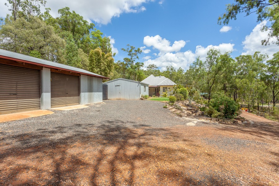 This 3 bedroom charmer is surrounded by beautiful landscaping and enjoys panoramic views of distant mountain ranges. enjoy the peace and quiet at the end of hidden cul de sac only 5 minutes out of Withcott, 15 minutes to Toowoomba. The home boasts verandahs on 2 sides plus a rear covered deck ideal for entertainment all year round. There are two enclosed sheds with concrete floors - a three bay shed and a two bay shed with power.