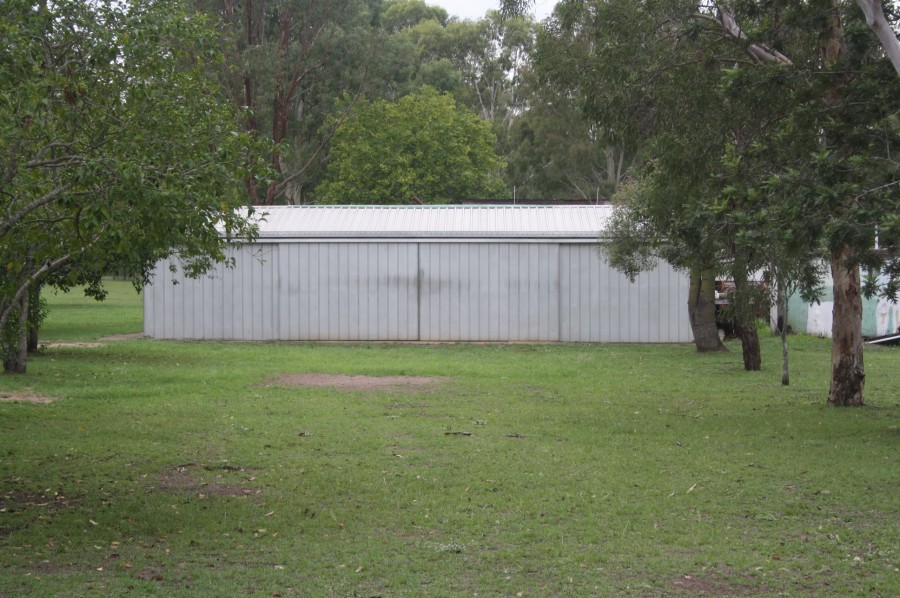 - 4 Bay shed (12m x 6m)with power, Double roller door garage (6m x 6m)