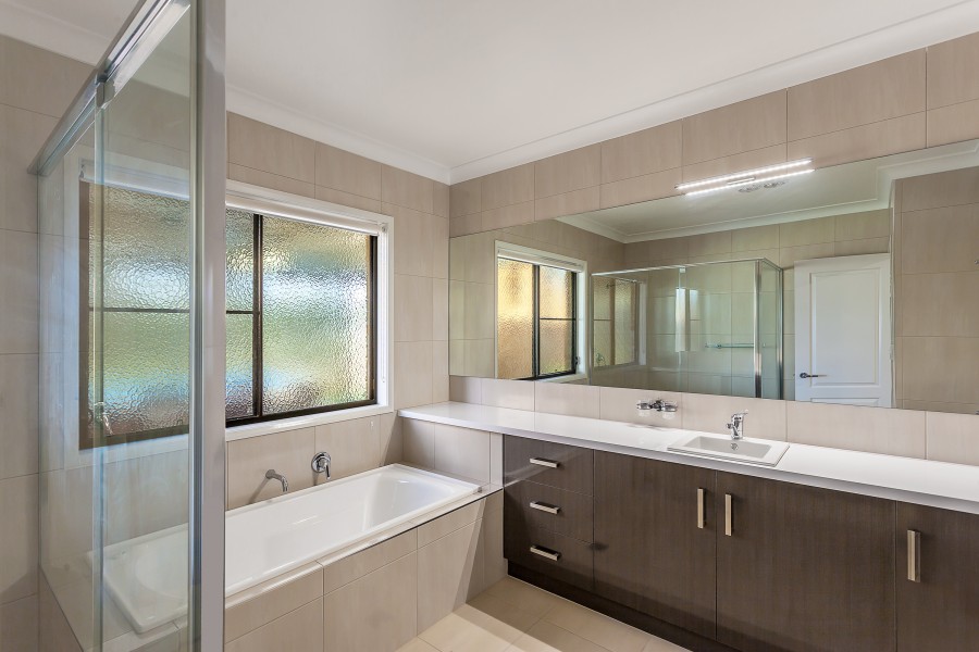 * Big main bedroom, stunning Hollywood walk through robe, luxurious ensuite with spa bath and wall to ceiling tiles.