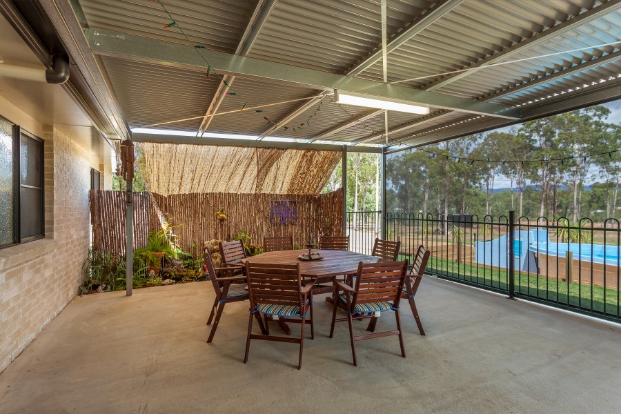 * 6m x 12 m Covered Outdoor Entertainment and party area overlooking the sparkling pool plus a vista of open spaces and tall eucalypts.