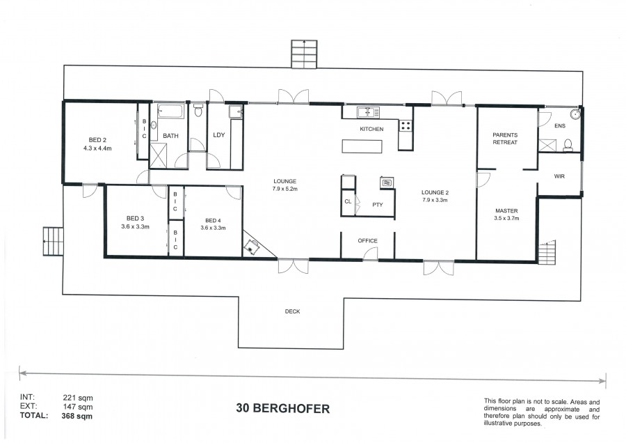 -All bedrooms are large, three with built ins and the main with a walk in robe. The main bedroom incorporates a stylish parents retreat or nursery , en-suite and large walk in robe. Second bedroom is a a big double bedroom located at the opposite end of the house with separate entry to veranda. It would be ideal for guests or granny.