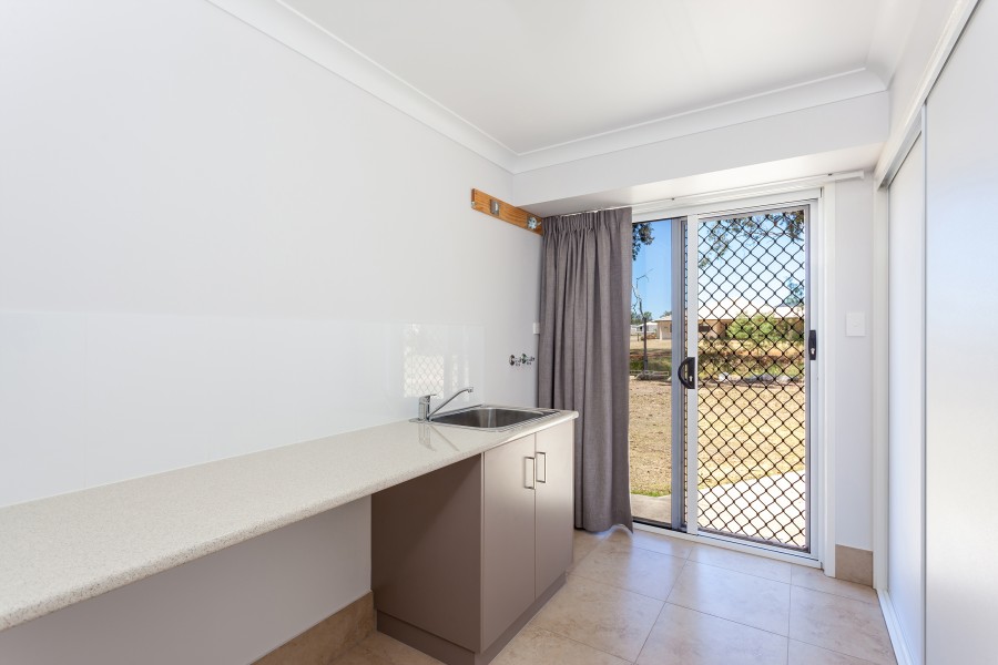 Easy care landscaping features colourful sandstone boulder retaining walls plus a variety of boundary line trees that provide privacy and tranquil surrounds.