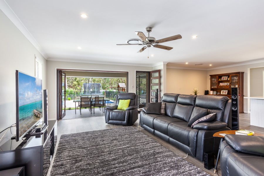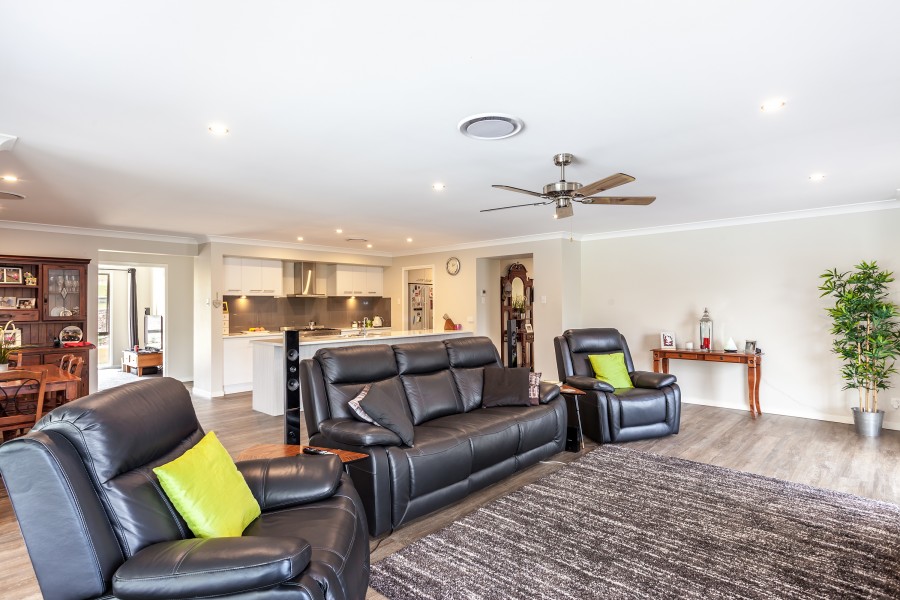 Built only 3 years, this designer home also features spacious bedrooms with built ins, master suite with walk in robe, ensuite, shower and bath. There is plenty of storage space, wide windows throughout for summer breezes and rural views that capture the essence of country living. A special feature is the wide front entry that gives a sense of luxury as you enter the living areas. This feeling of luxury continues through the living areas to the stacker glass doors that flow seamlessly out to the al fresco area that combines perfectly with the stunning inground pool.
